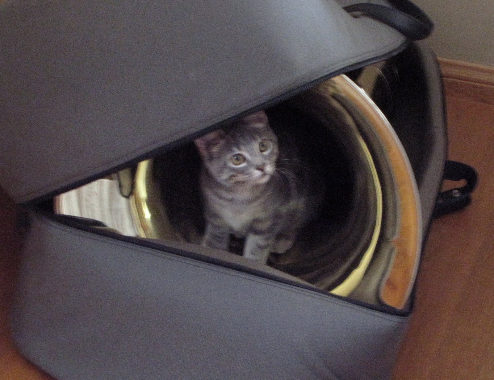 I case you haven't figured out what Kestrel is checking out, she climbed inside my daughter's tuba! Not something you see every day :-)